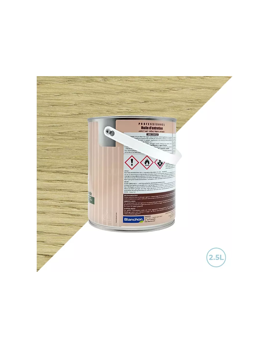 Découvrez l'huile d'entretien Blanchon naturel 2,5L, votre allié incontournable pour nourrir et protéger vos parquets et planchers. Conçue pour répondre aux besoins spécifiques des surfaces en bois, cette huile révèle la beauté naturelle du bois tout en le préservant des agressions quotidiennes. Son utilisation régulière assure une protection durable et un aspect naturel qui sublimera votre intérieur.