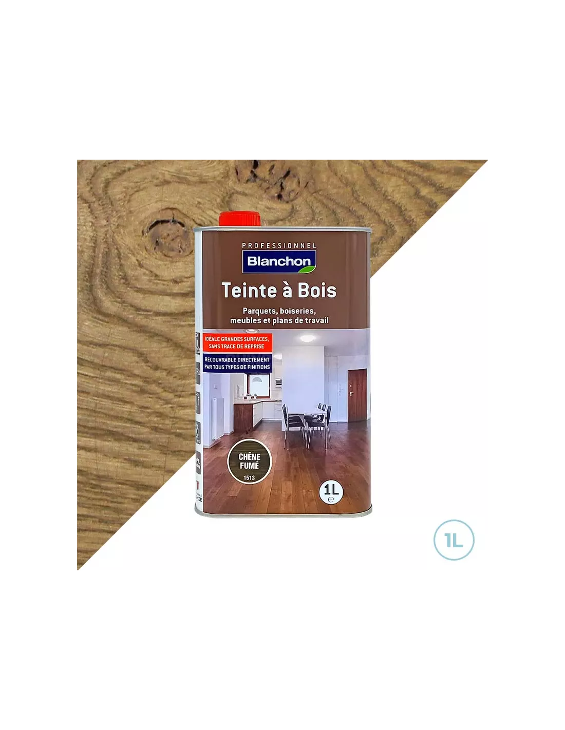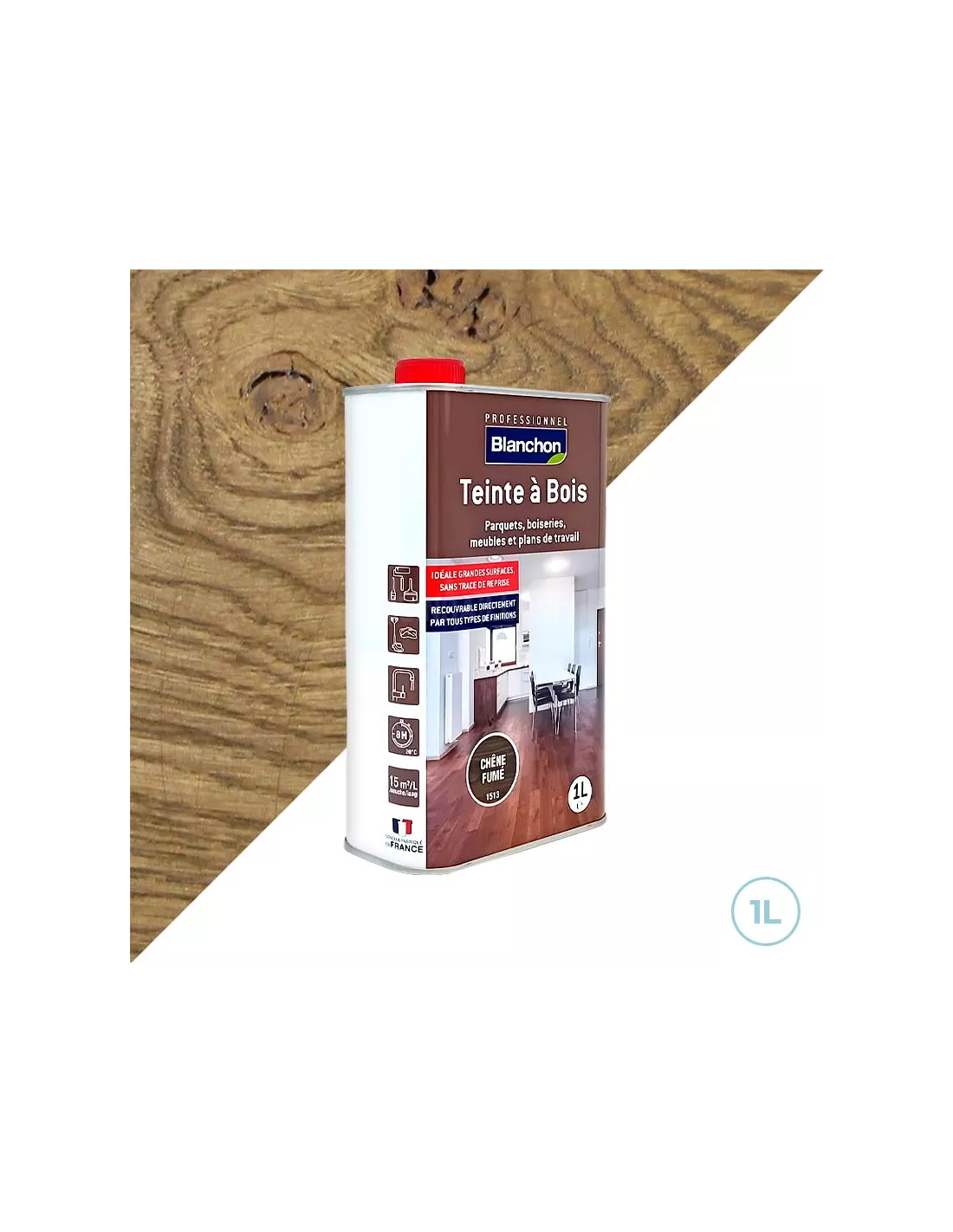 Utilisez cette teinte lorsque vous souhaitez moderniser l’aspect d’un parquet, d’un meuble ou d’une boiserie avec un effet chêne fumé contemporain. Elle est parfaite pour les rénovations comme pour les créations neuves. Idéale avant l’application d’un vitrificateur, d’un vernis ou d’une huile de protection Blanchon, elle assure un résultat durable et harmonieux.