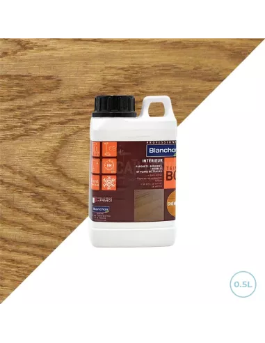 Formulée à base de pigments riches et de résine aqua-polyuréthane, cette teinte à bois Blanchon offre une finition homogène et naturelle. Sa teinte chêne moyen apporte une couleur chaude et authentique qui convient à tous types de bois, du plus clair au plus foncé. Prête à l’emploi, elle s’applique sans trace ni reprise. Un demi-litre permet de couvrir environ 7 à 8 m² selon la porosité du bois.
