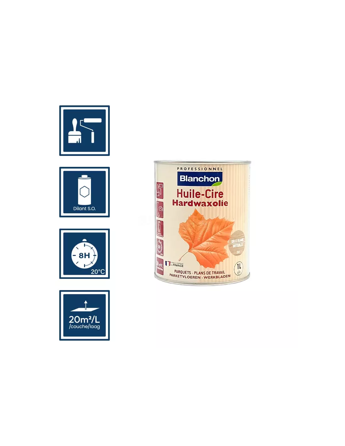Pour des résultats optimaux, associez l'huile cire gris blanc Blanchon avec nos huiles et cires pour parquet, ainsi que les produits de notre gamme de rénovation parquet. Ces produits complémentaires vous aideront à préparer la surface avant l'application et à maintenir la beauté et la durabilité de votre bois sur le long terme. Découvrez également toute notre sélection dédiée à la marque sur notre page Blanchon huile pour un traitement complet et harmonieux de vos bois.